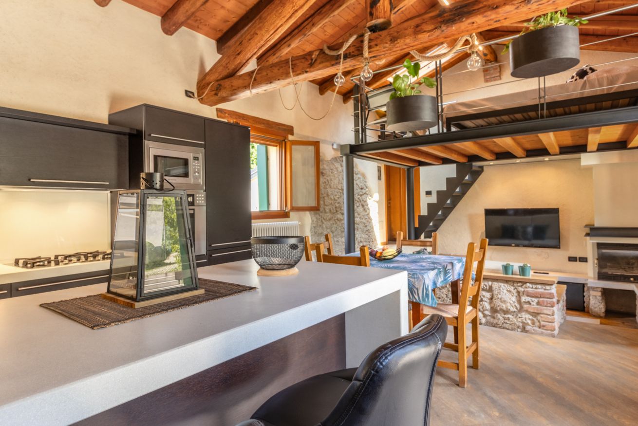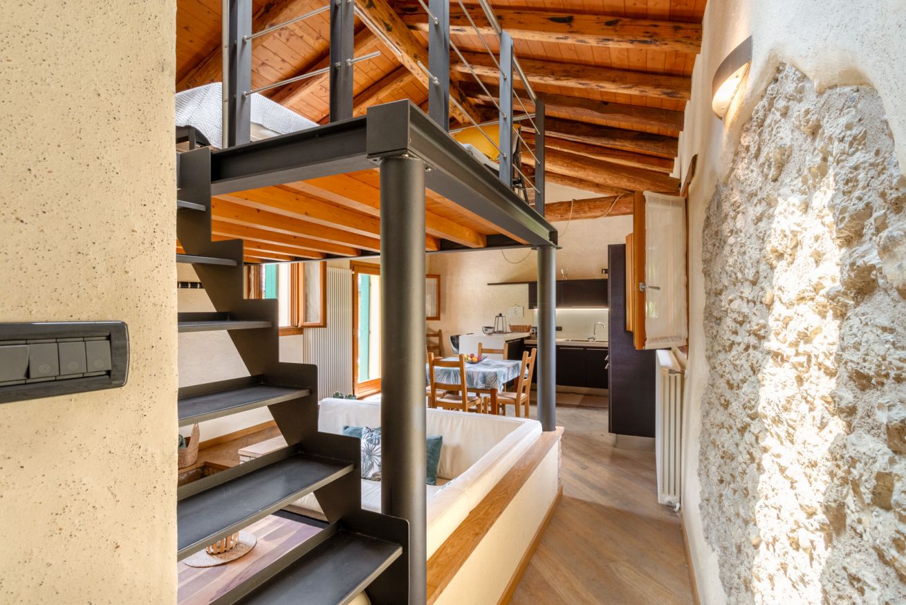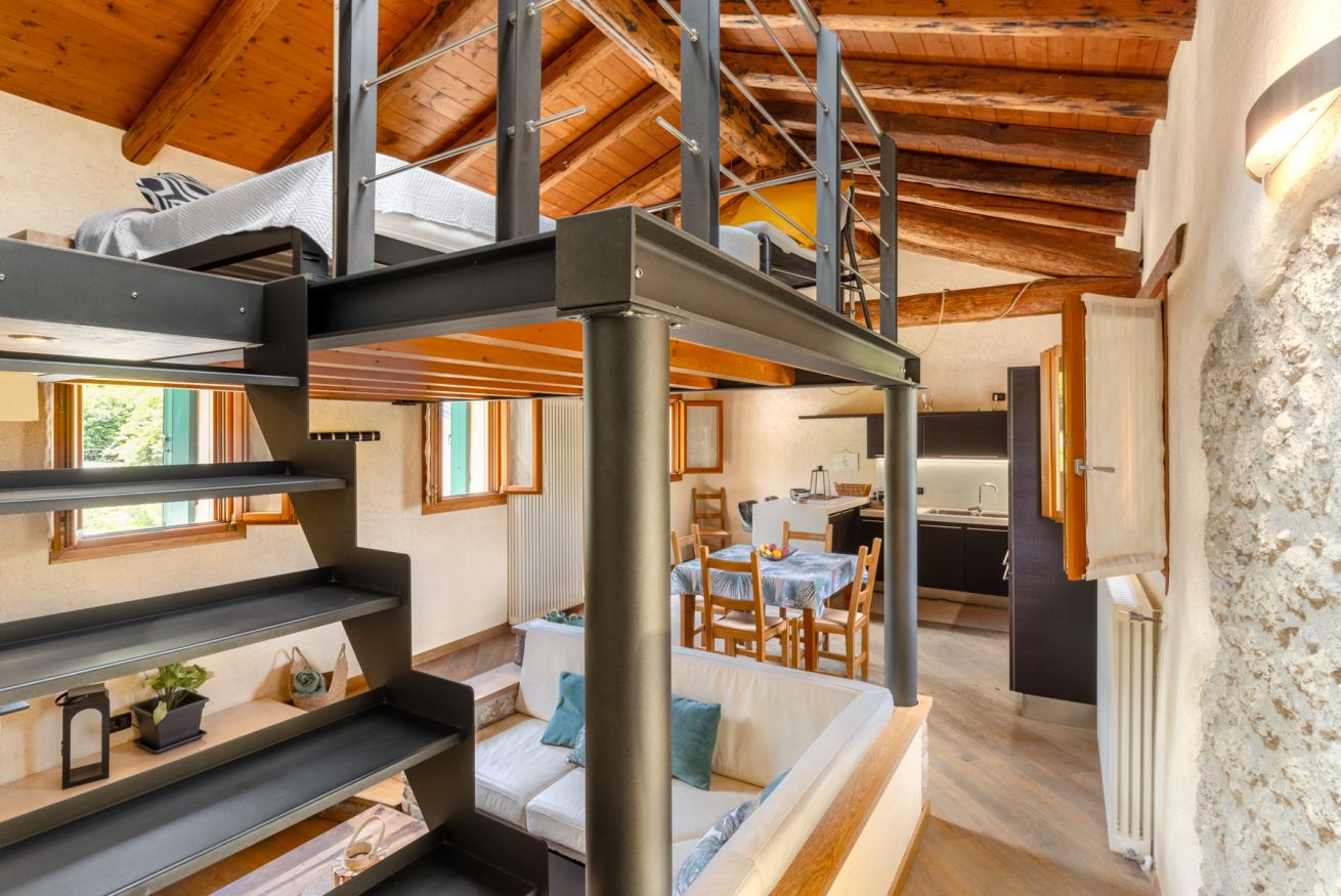 Il soggiorno dispone di un soppalco con letto matrimoniale e velux.