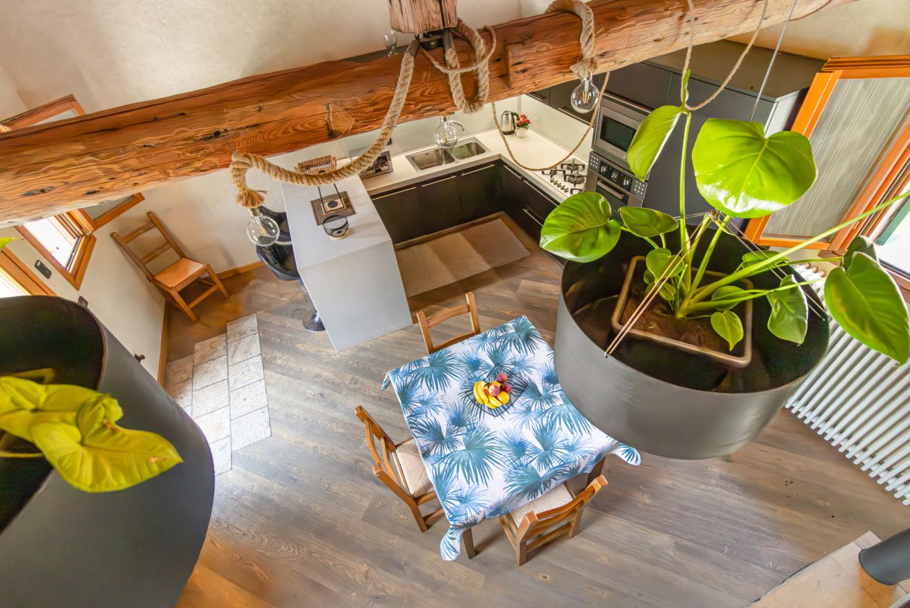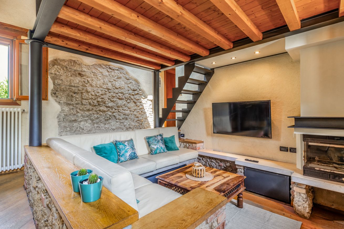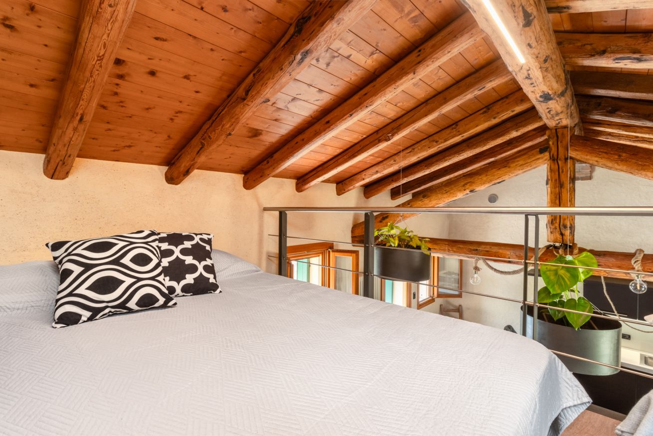 Il soggiorno dispone di un soppalco con letto matrimoniale e velux.