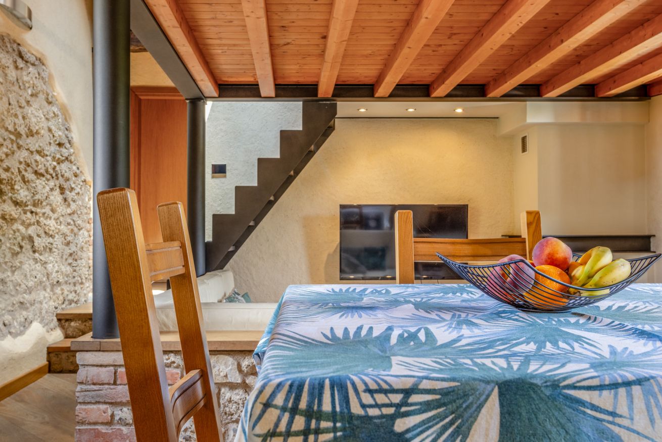 La proprietà, totalmente indipendente, presenta un'area giorno con travi e mattoni a vista, composta da angolo cottura completamente attrezzato di microonde, forno, lavastoviglie, tostapane, moka, frigorifero, freezer, bollitore e un'area relax con divano, e TV.