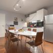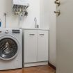 Scendendo qualche gradino si accede alla comoda e moderna cucina completamente attrezzata con forno, microonde, tostapane e bollitore e all’area lavanderia fornita di lavatrice, stendino, asse e ferro da stiro.