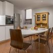 L’appartamento, arredato in stile raffinato, si trova al piano terra e, entrando, troviamo un elegante e spazioso soggiorno dai soffitti alti, con TV e due confortevoli divani, uno dei quali è divano letto. Qui potete godervi un piacevole aperitivo o rilassarvi con un bel libro.