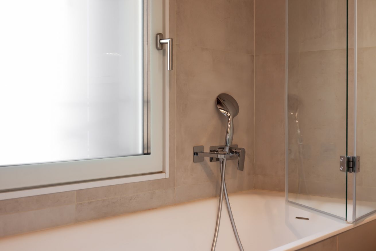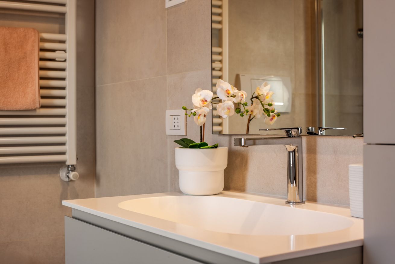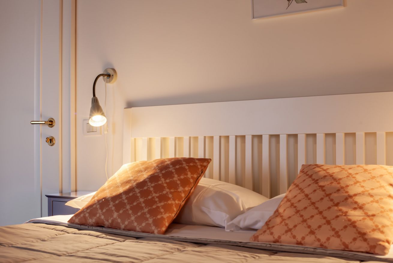 L’appartamento offre due intime camere da letto, entrambe con bagno privato, pensate per garantire privacy e benessere:
