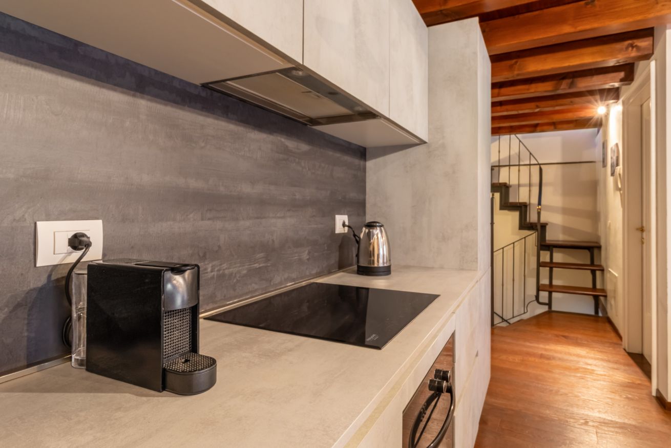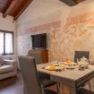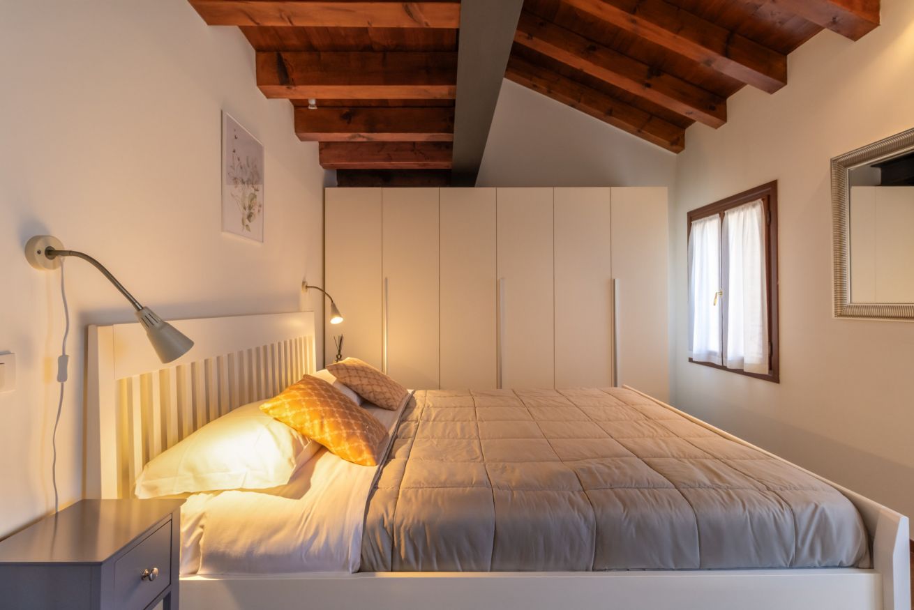 Avvolta da una luce naturale che accarezza ogni angolo, la zona giorno accoglie con calore e semplicità: un comodo divano letto matrimoniale invita al relax, mentre l’angolo cottura, completo di ogni comfort, incluso bollitore e macchina del caffè, promette dolci risvegli e piacevoli momenti da condividere. Sono presenti materiali di pregio, quali ad esempio marmi per le scale, legno per pavimenti e soffitti travati a vista.