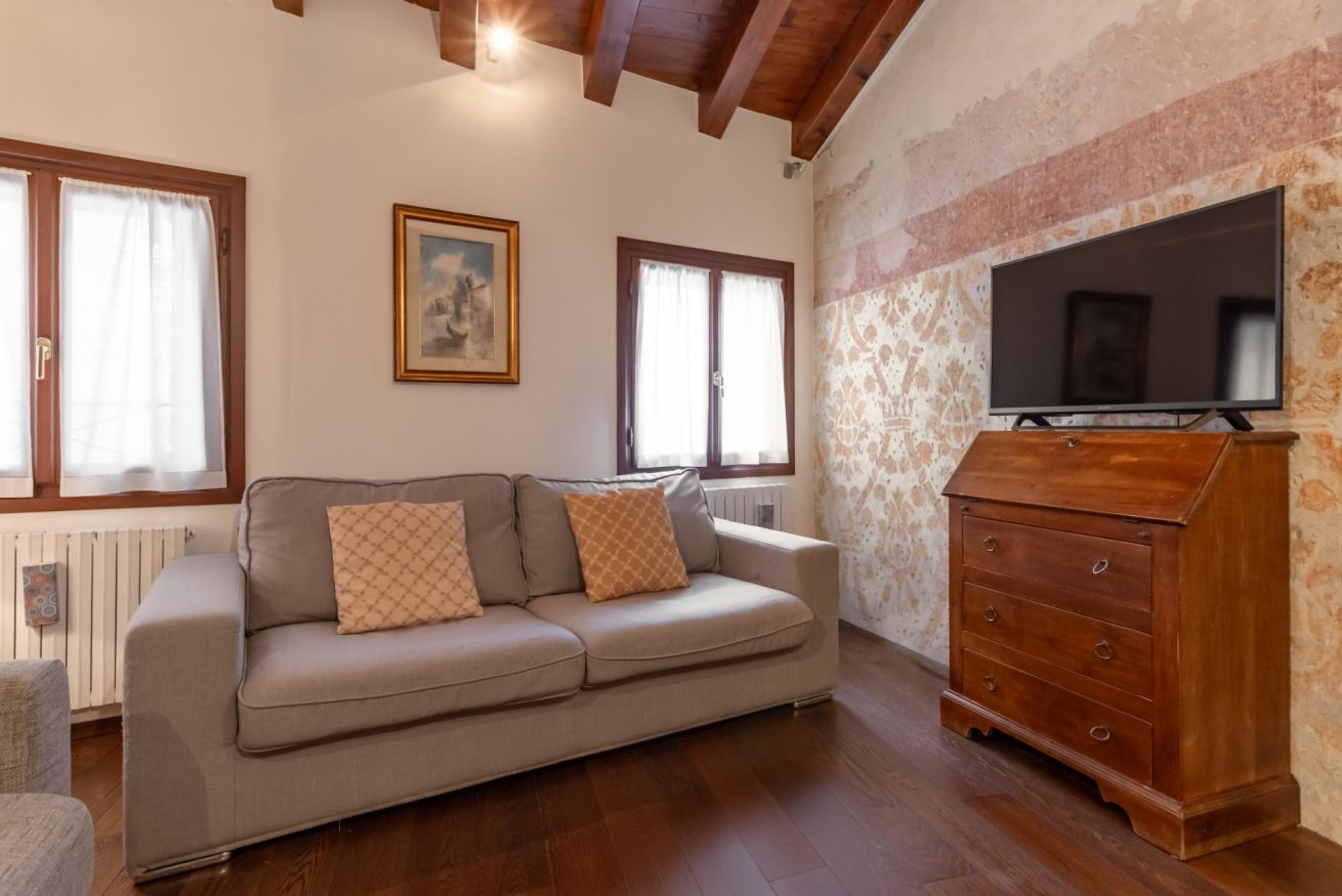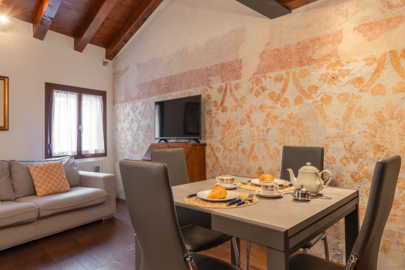 Questo raffinato appartamento si trova in Piazza San Vito la più centrale e migliore piazza di Treviso insieme a P.za Dei Signori, ed in prossimità dei Buranelli, il Canale Medio di Treviso, un ramo del fiume Botteniga che attraversa il centro storico, noto per la sua bellezza e l'atmosfera romantica. Fa parte di un palazzetto di pregio ed è caratterizzato dalla presenza di meravigliosi affreschi originali dell’epoca, al secondo piano senza ascensore.