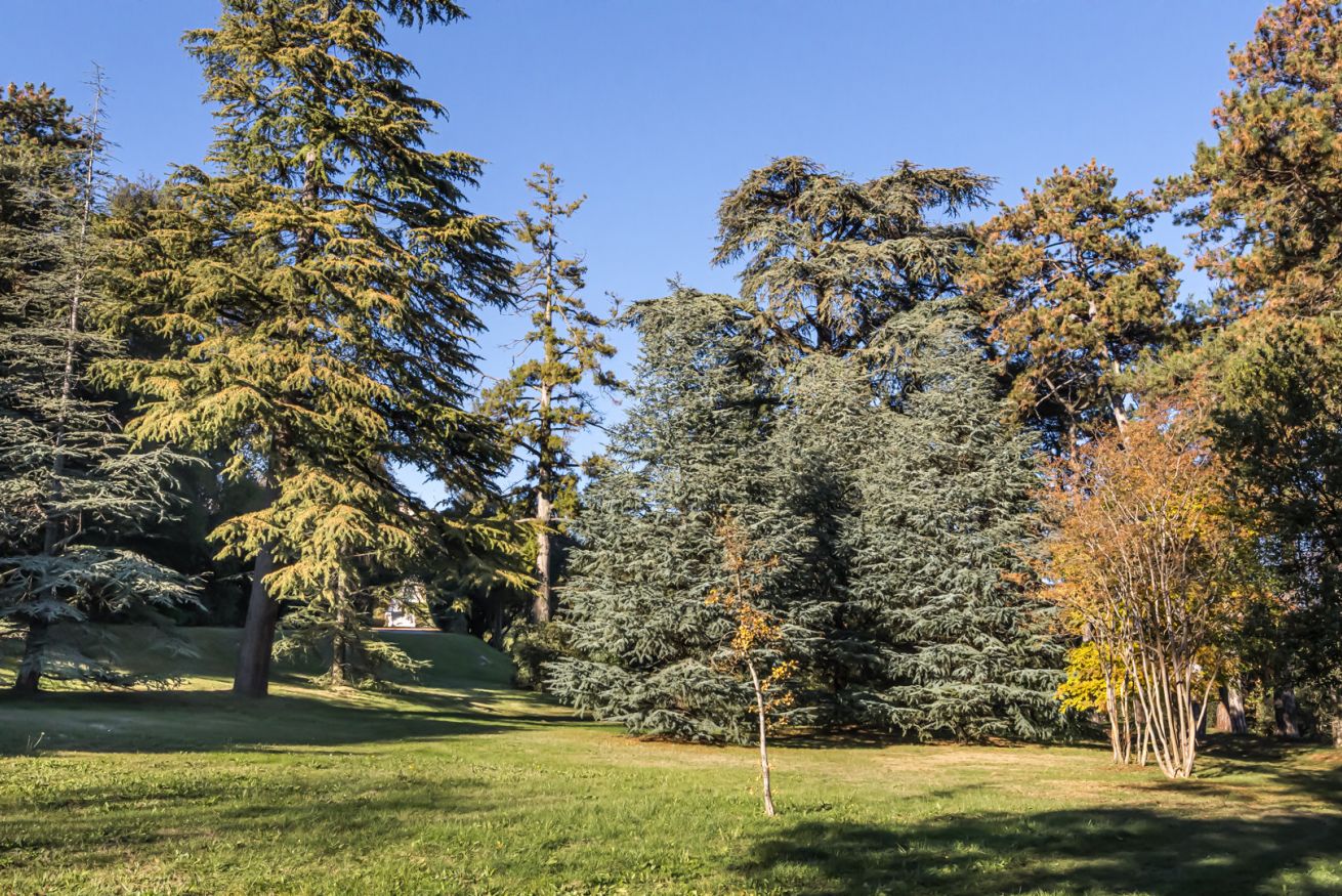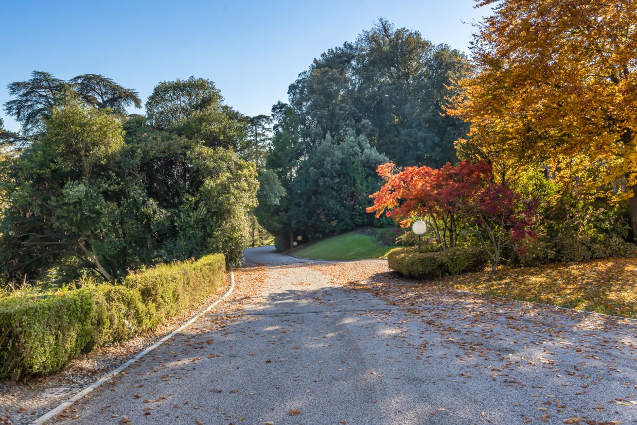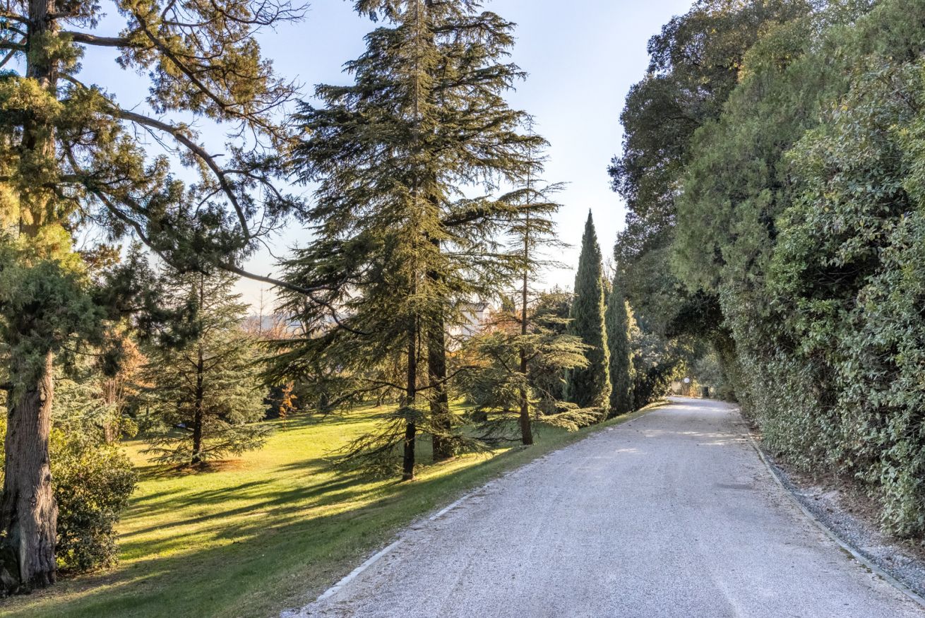 La villa è circondata da un parco di 4 ettari privato, ad uso esclusivo degli ospiti e dei proprietari, completamente recintato e caratterizzato dalla presenza di numerose essenze arboree storiche, come tigli, lecci, cedri del Libano, pini, magnolie, palme, ulivi e cipressi. E' attraversato da vari percorsi pedonali risalenti all'epoca di costruzione e tutt'oggi praticabili. Di particolare pregio e suggestione è quello sulla sommità, che conduce dalla villa al belvedere passando sotto la volta creata dai rami dei lecci secolari.